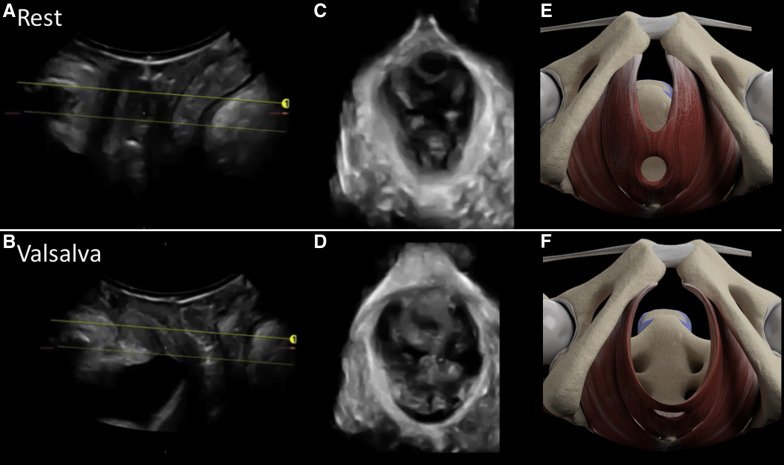En total, 138 mujeres fueron incluidas en el análisis. El mayor diámetro anteroposterior del hiato del elevador en Valsalva se asoció con una segunda etapa más corta (r = –0.230, P = .021) y una segunda etapa activa (r = –0.338, P = .001) del parto. Las mujeres con coactivación del músculo elevador del ano tuvieron una duración de la segunda etapa activa significativamente más larga (60 ± 56 frente a 28 ± 16 minutos, p <0,001). El análisis de regresión de Cox, ajustado a la edad materna y la analgesia epidural, demostró una correlación significativa independiente entre la coactivación del músculo elevador del ano y una segunda etapa activa del parto más prolongada (índice de riesgo, 2.085; intervalo de confianza del 95%, 1.158–3.752; P = .014).No hubo diferencias significativas entre las mujeres que se sometieron al parto quirúrgico (n = 46) en comparación con el grupo de parto vaginal espontáneo (n = 92) en cuanto al diámetro anteroposterior del hiato del elevador en reposo y en la maniobra de Valsalva, ni en la prevalencia del levador Coactivación de los músculos del ano (10/46 vs 15/92; P = .49).