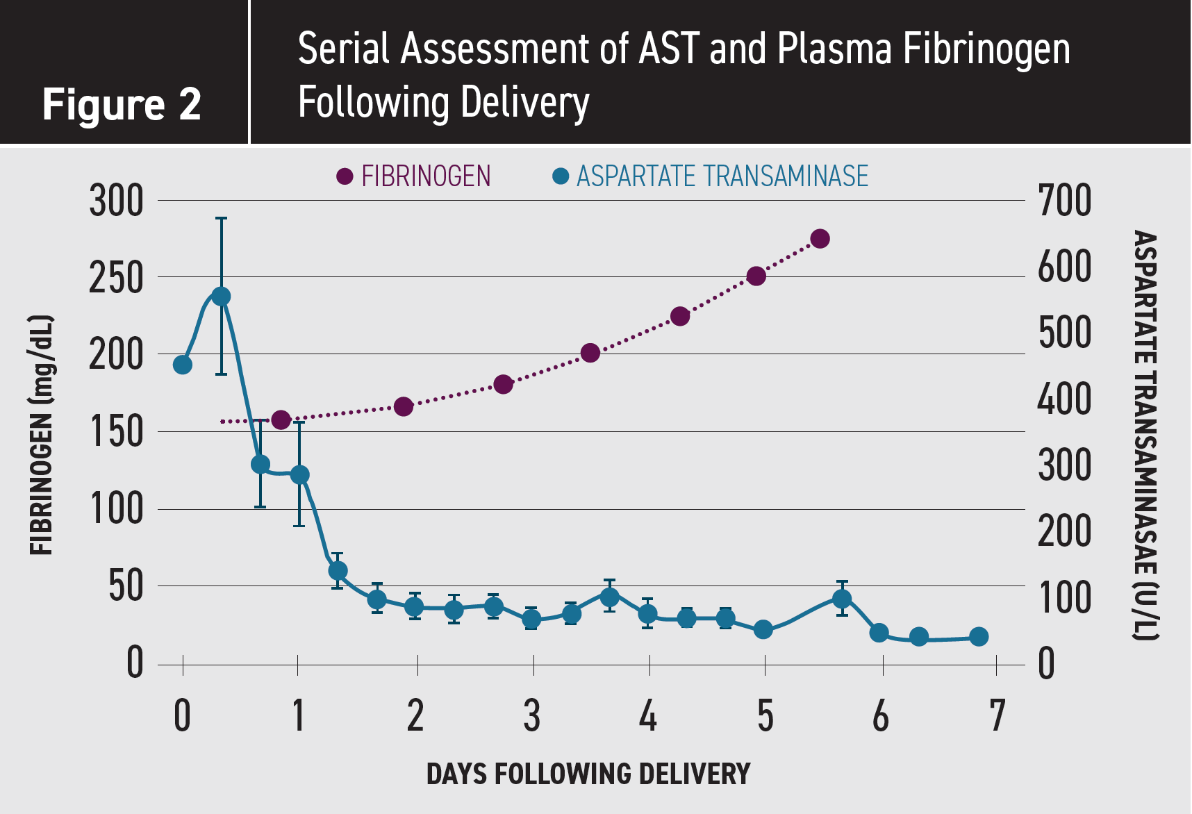 Otros marcadores de disfunción hepática, incluidos el colesterol y la bilirrubina total, comienzan a mejorar después de 3 a 4 días. La disfunción hemostática relacionada con la función hepática sintética o con la coagulopatía de consumo mejora entre 4 y 6 días después del parto, como lo indica el aumento del fibrinógeno plasmático y la disminución del dímero-D. Por el contrario, la recuperación renal medida por la creatinina sérica puede requerir de 7 a 10 días.